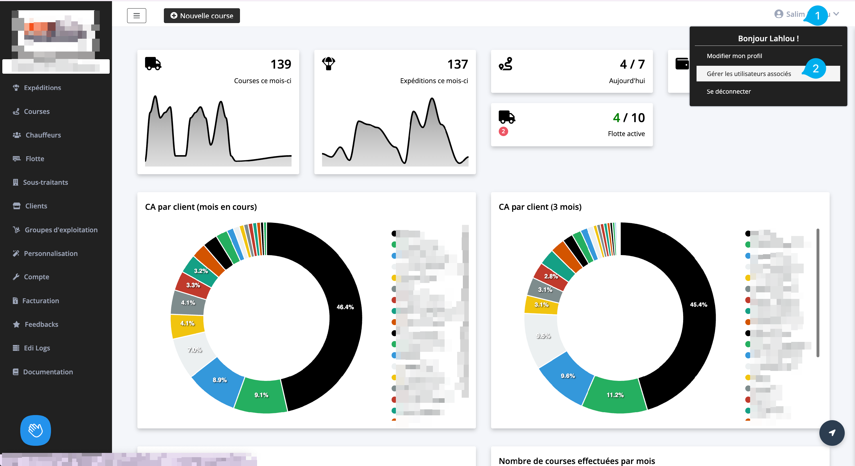 Accédez au menu personnel en haut à droite de votre écran. - Gérez les utilisateurs associés