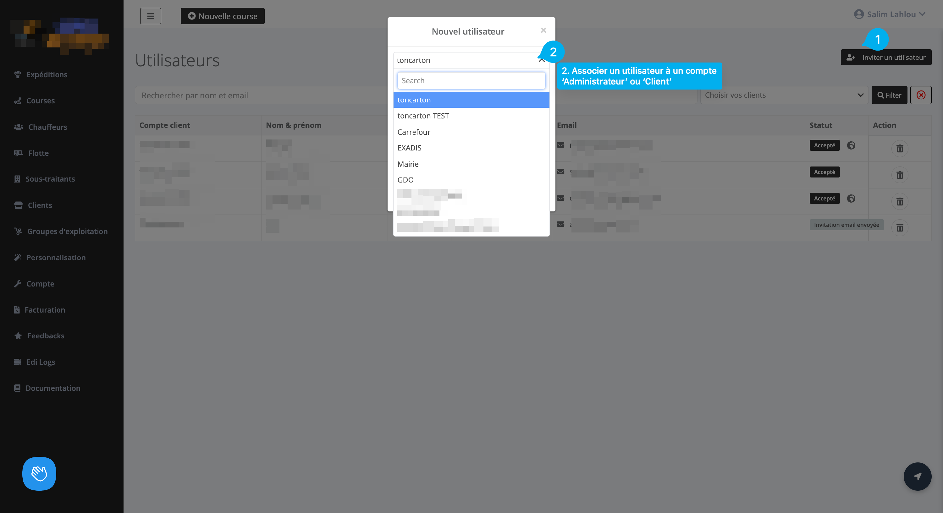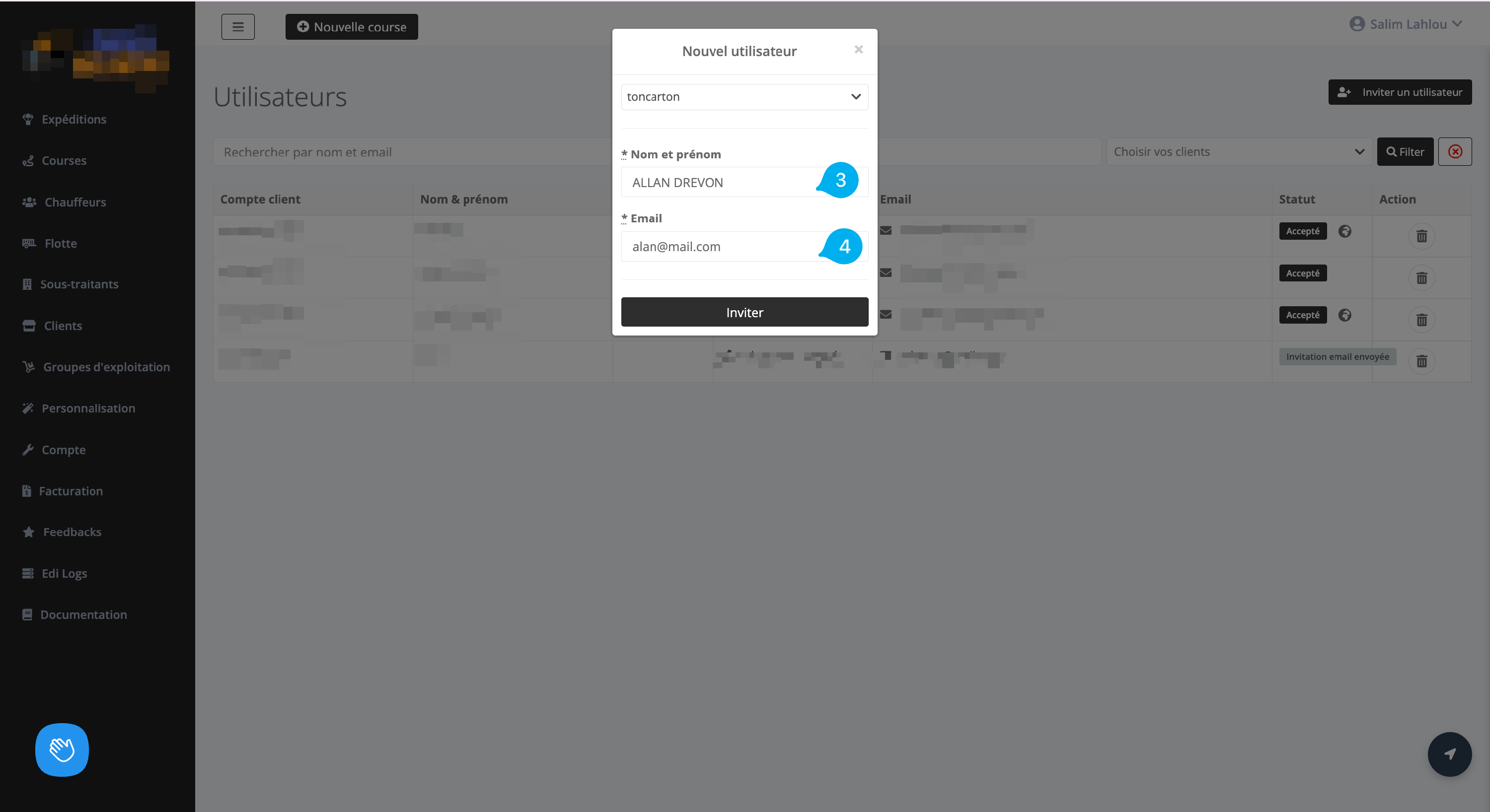 Voici les étapes à suivre pour inviter un nouvel utilisateur sur votre espace Toncarton :